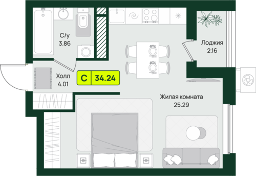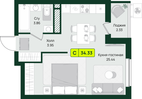 34,3 м²