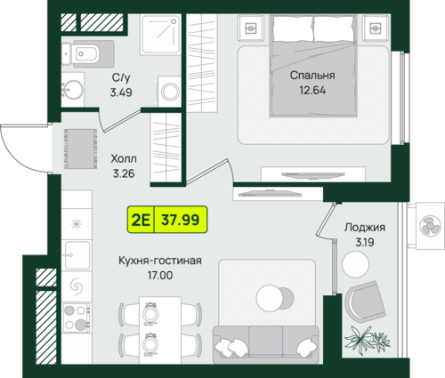 38 м²