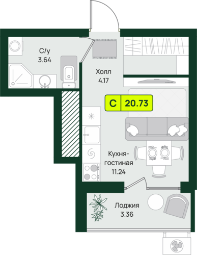 20,7 м²
