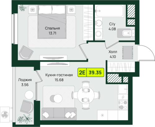 39,4 м²