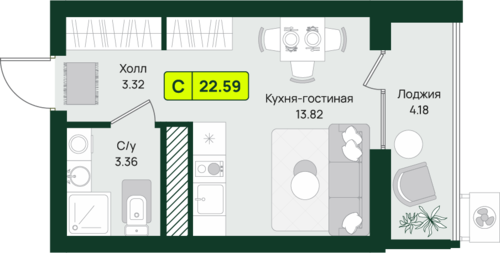 22,6 м²