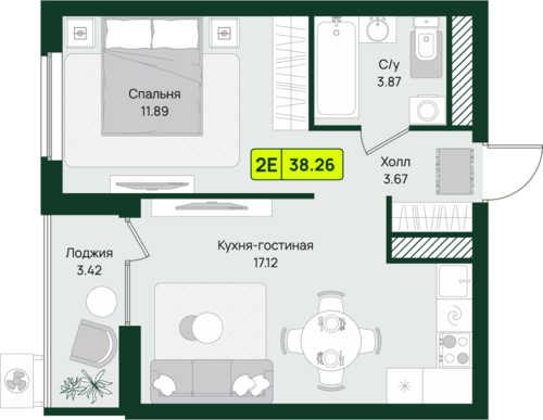 38,3 м²